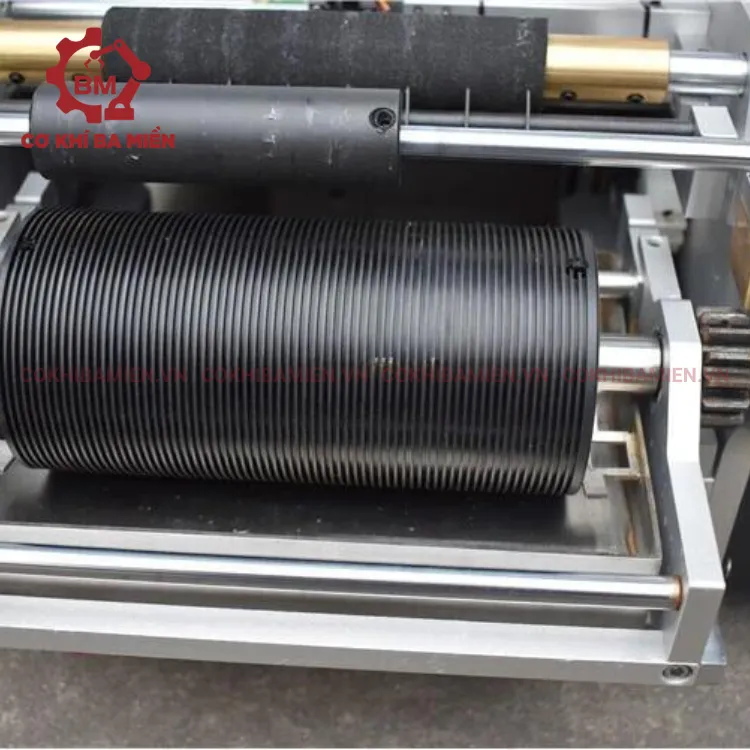 - Hệ thống cấp liệu: Thường là một cuộn vải hoặc giấy, được đặt trên một trục ngang và được lắp vào máy.