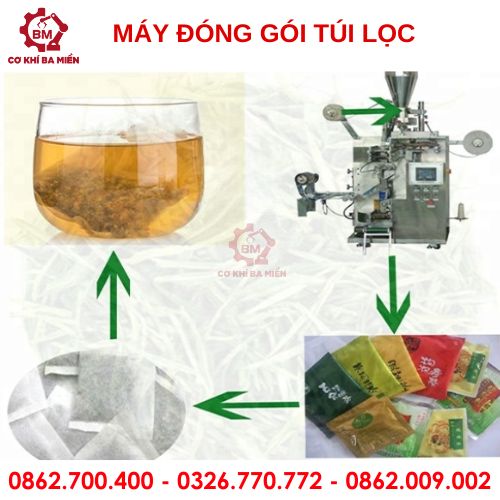 Máy đóng gói túi lọc được sử dụng rộng rãi khi sản xuất túi trà, túi lipton, bột cà phê,.. trong kinh doanh hộ gia đình, doanh nghiệp lớn nhỏ đều đáp ứng được quy mô của máy được Công ty Cơ Khí Ba Miền chế tạo, phân phối toàn quốc.