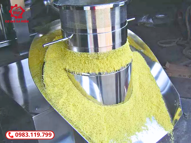 - Phễu ra sản phẩm: Sau khi quá trình ép hoàn thành, các hạt cốm sẽ rơi xuống phễu ra sản phẩm để thu gom và chuyển sang công đoạn xử lý tiếp theo.