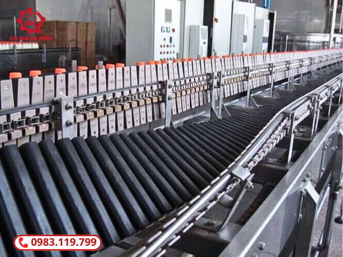 - Hỗ trợ thân chai tối ưu: Tấm xích đỡ thân chai được cố định bằng ống bọc cao su chịu nhiệt, giúp chai tròn không bị lăn hay trượt. Thiết kế này cũng tương thích với các loại chai có dung tích lớn, hỗ trợ vận hành linh hoạt và an toàn.